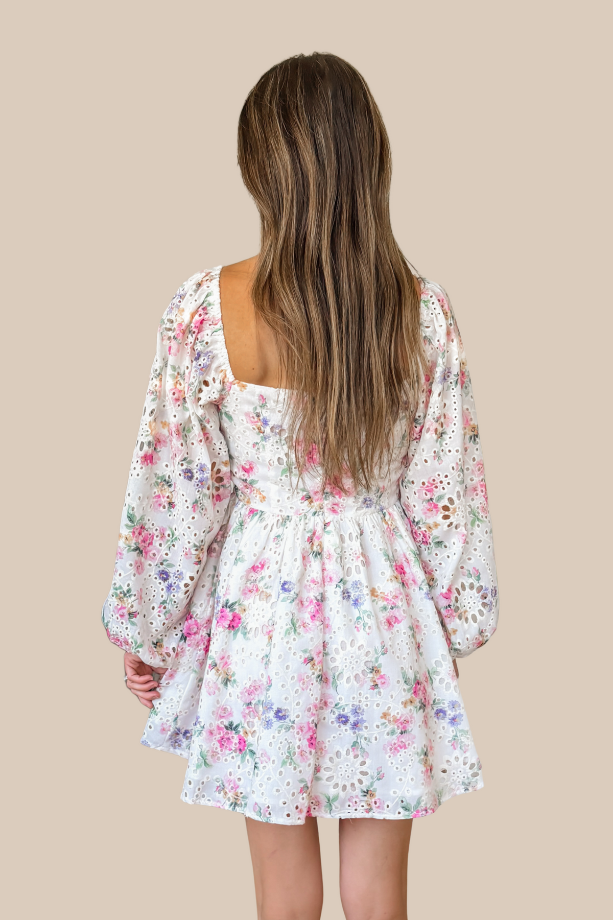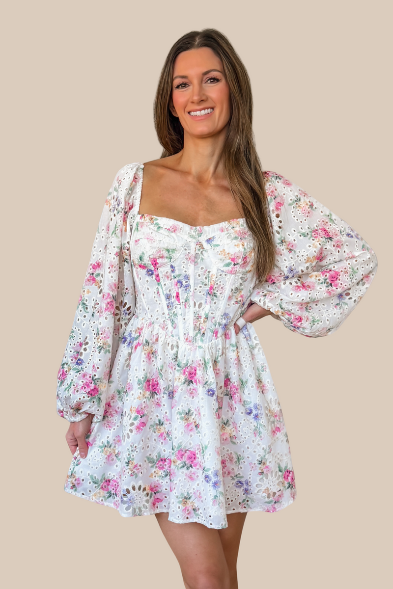 Annalise Floral Eyelet Puff Sleeve Mini Dress - White Multi