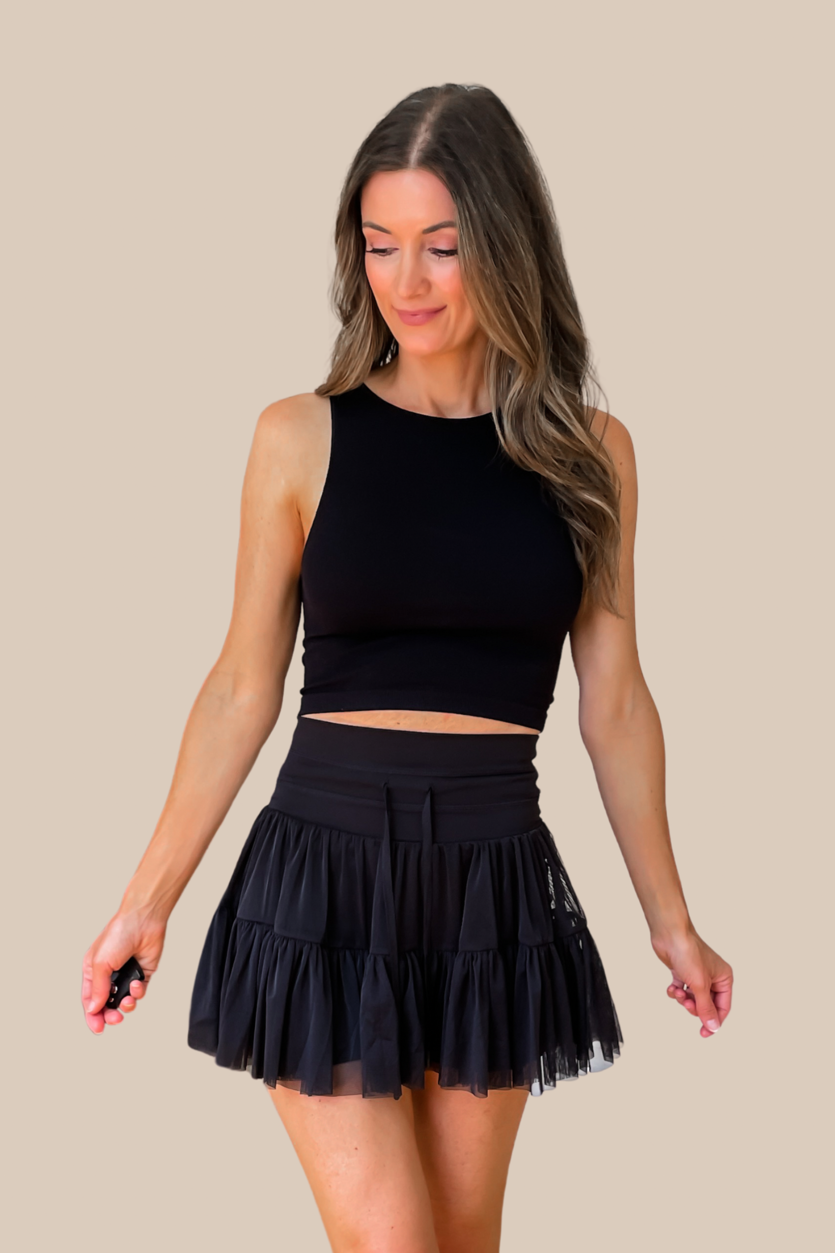 Twin with Taylor Swift in this cute and functional tulle skort perfect for everything from running errands, to dance, pickleball, tennis and more! The Popflex Pirouette Skort in Black features a high rise outer tulle skirt with shorts underneath including side pockets, incredibly soft fabric, and adjustable waist with tie. This item is excluded from some discounts.