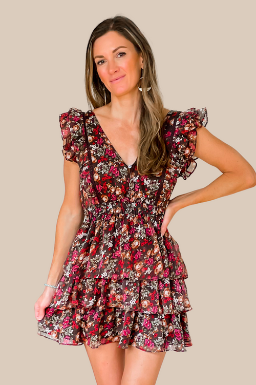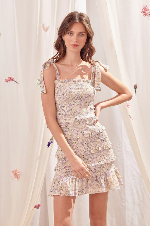 Serenity Floral Tiered Mini Dress - Cream - SALE