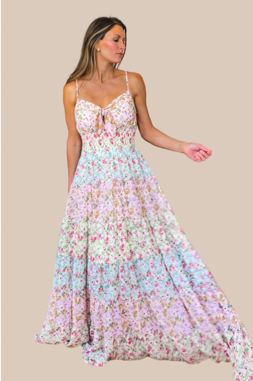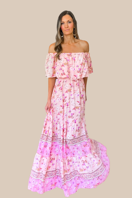 Pink Bloom Tiered Maxi Dress