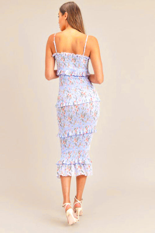Florence Blue Floral Tie Strap Midi Dress - restock!