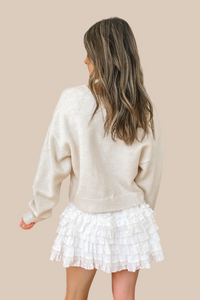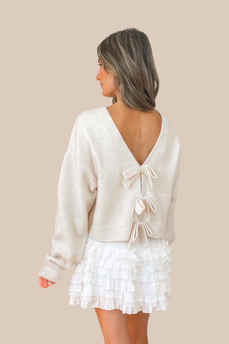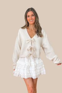 Elevate your outfit with this fun and reversible sweater with the cutest details! Our Beautiful Bow Sweater in Cream features long sleeves, v neck, and bow details. Wear the bows in the front or the back for different looks!